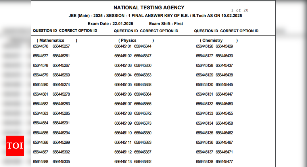 The National Testing Agency (NTA) has released the Joint Entrance Examination (JEE) Main answer key for the Bachelor of Engineering (BE), Bachelor of Technology (B.Tech) exam today, February 10, 2025. Candidates who took the exam can visit the official website, jeemain.nta.nic.in to access the answer key. According to media reports, 12 questions have been dropped with most being from the physics section. The exam was held from January 22 to 30, 2025.